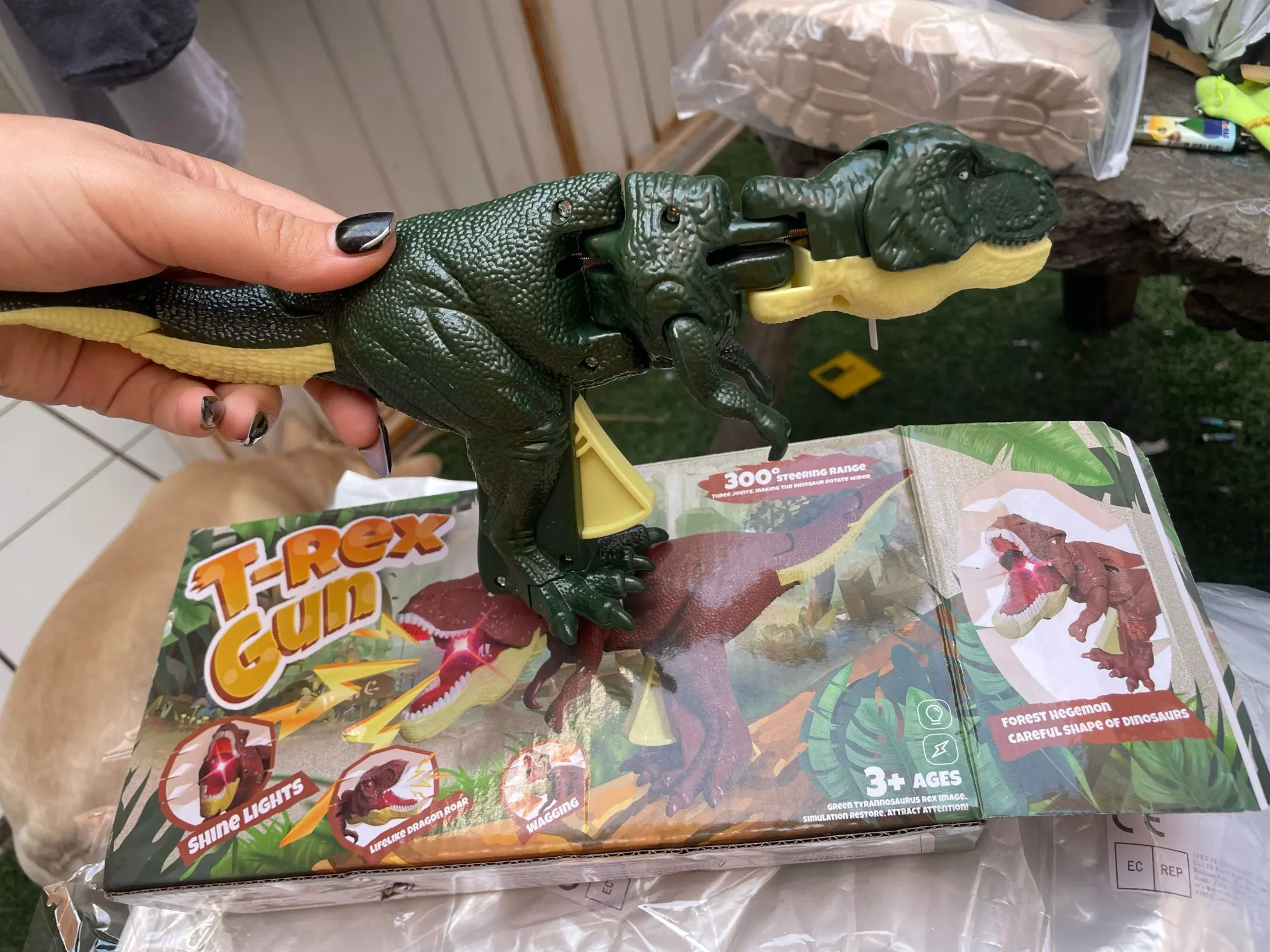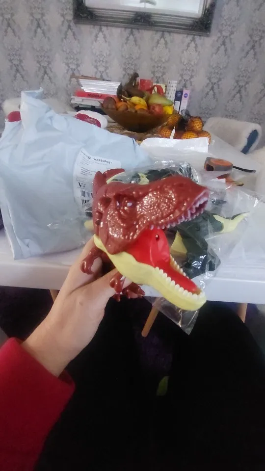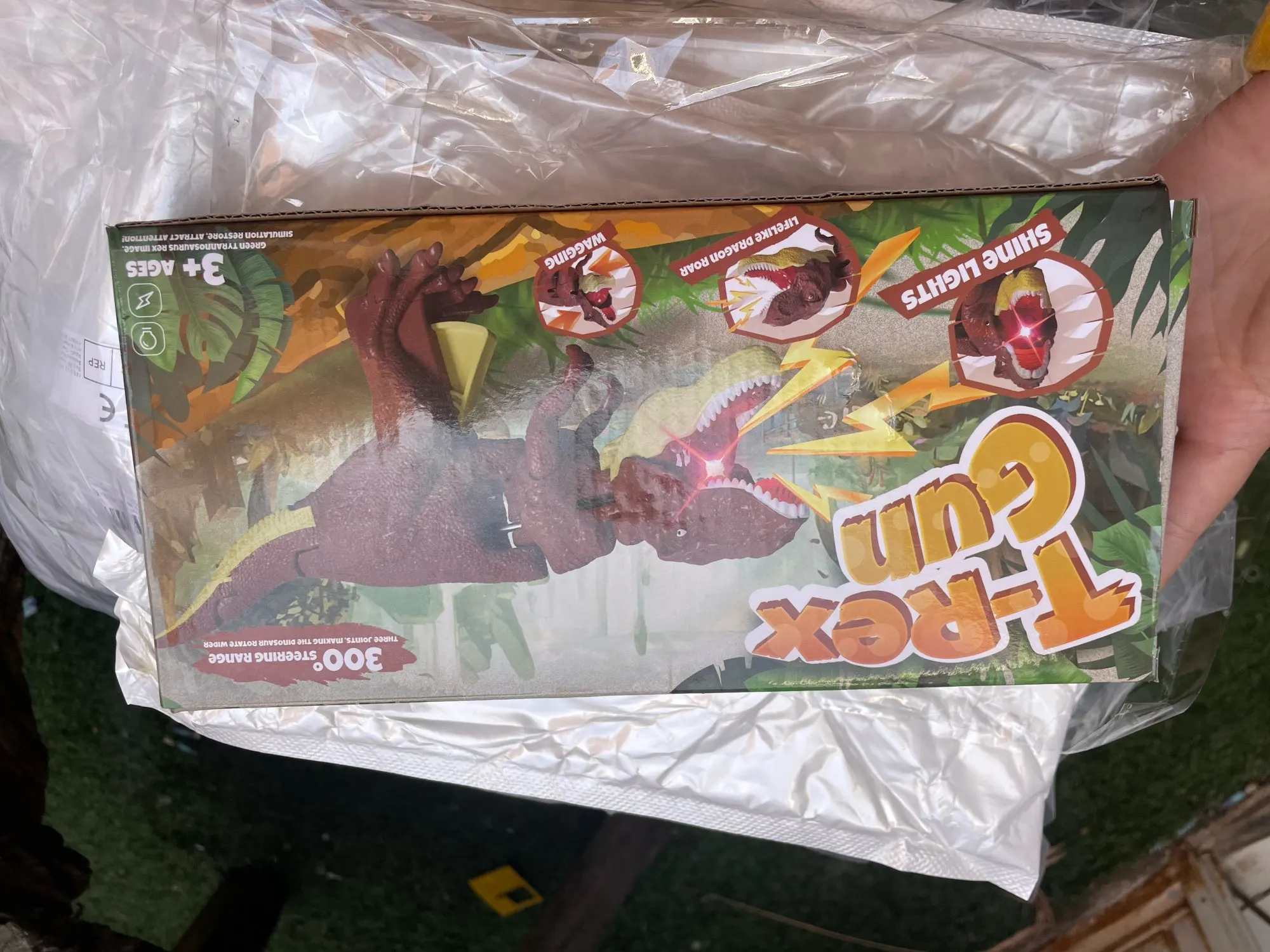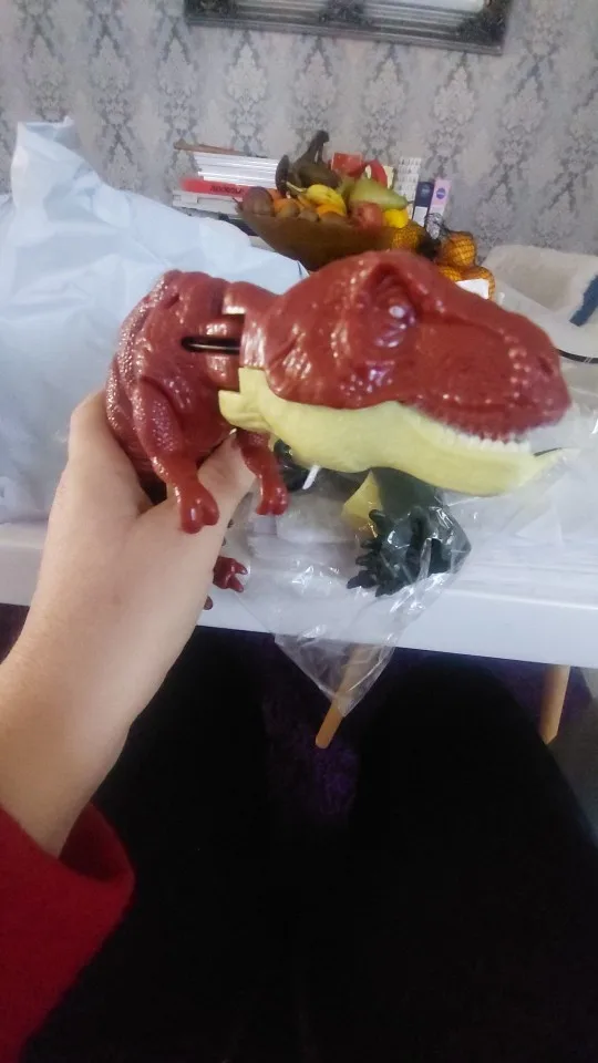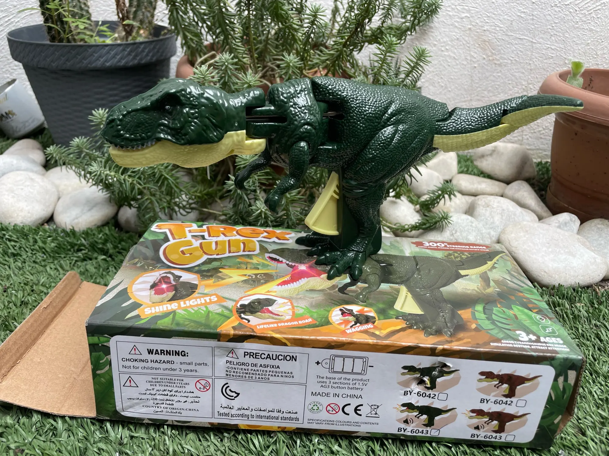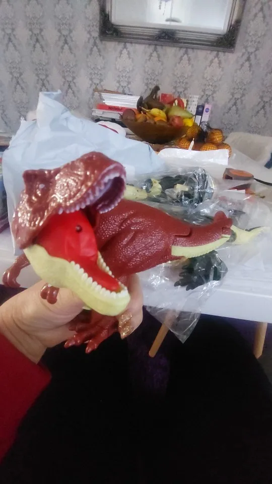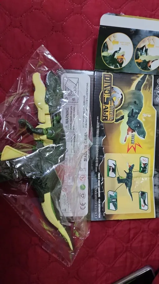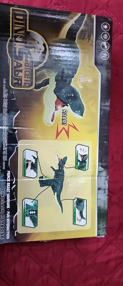 llego todo bien, solo que la caja un poco maltratada pero llego impecable el dino, además trae las pilas!!